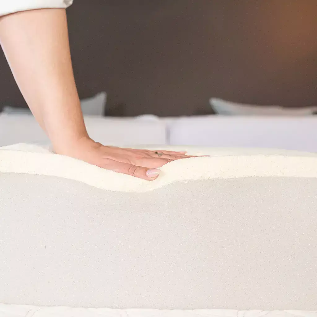 Su base de espuma de alta densidad ofrece un sostén estable y duradero, mientras que su capa superior de látex 100% natural aporta la adaptabilidad necesaria para aliviar tensiones sin hundirse.